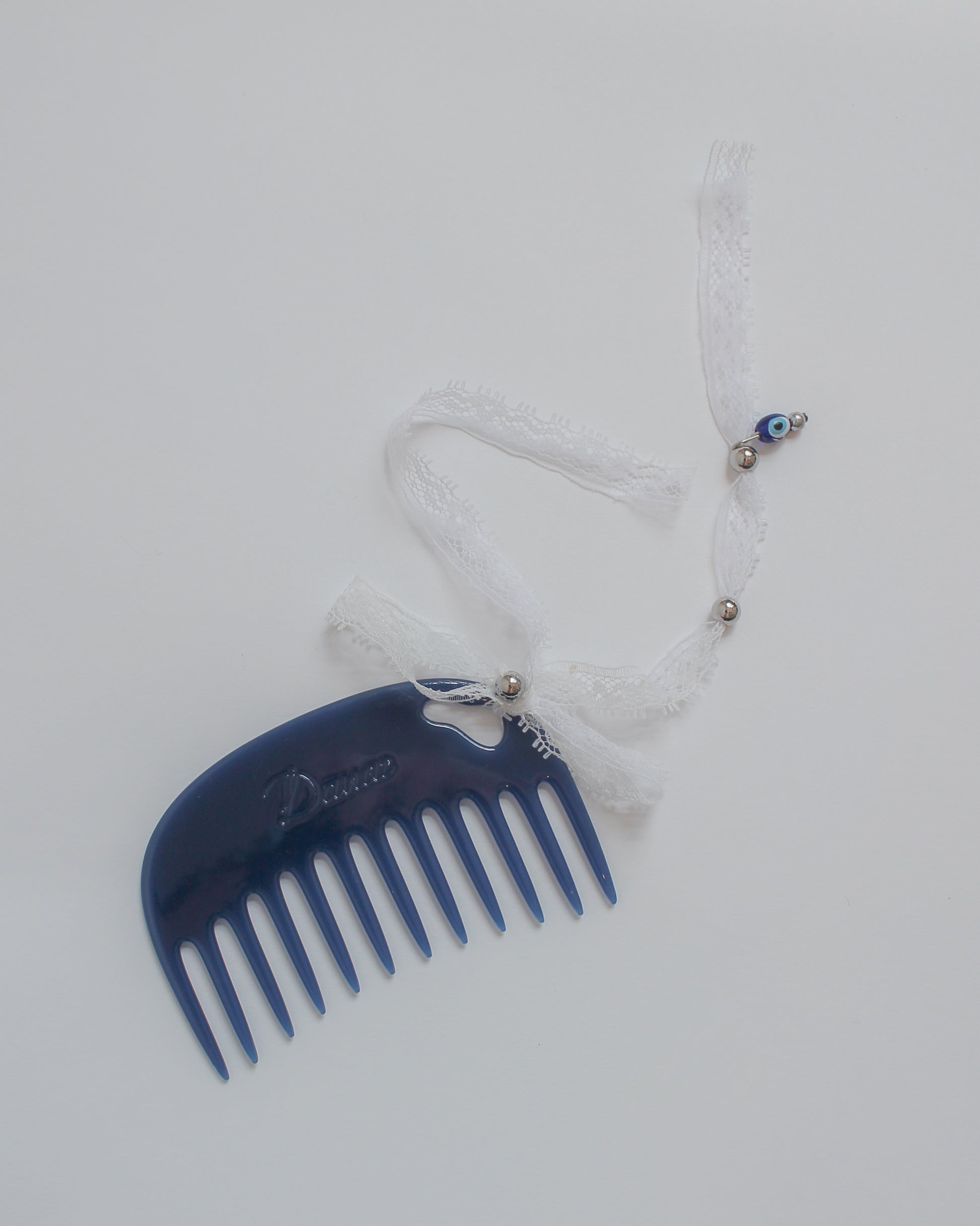 Custom designed in NYC, it's a cellulose acetate comb with widely spaced teeth to gently work through tangles on all types of hair without causing breakage.